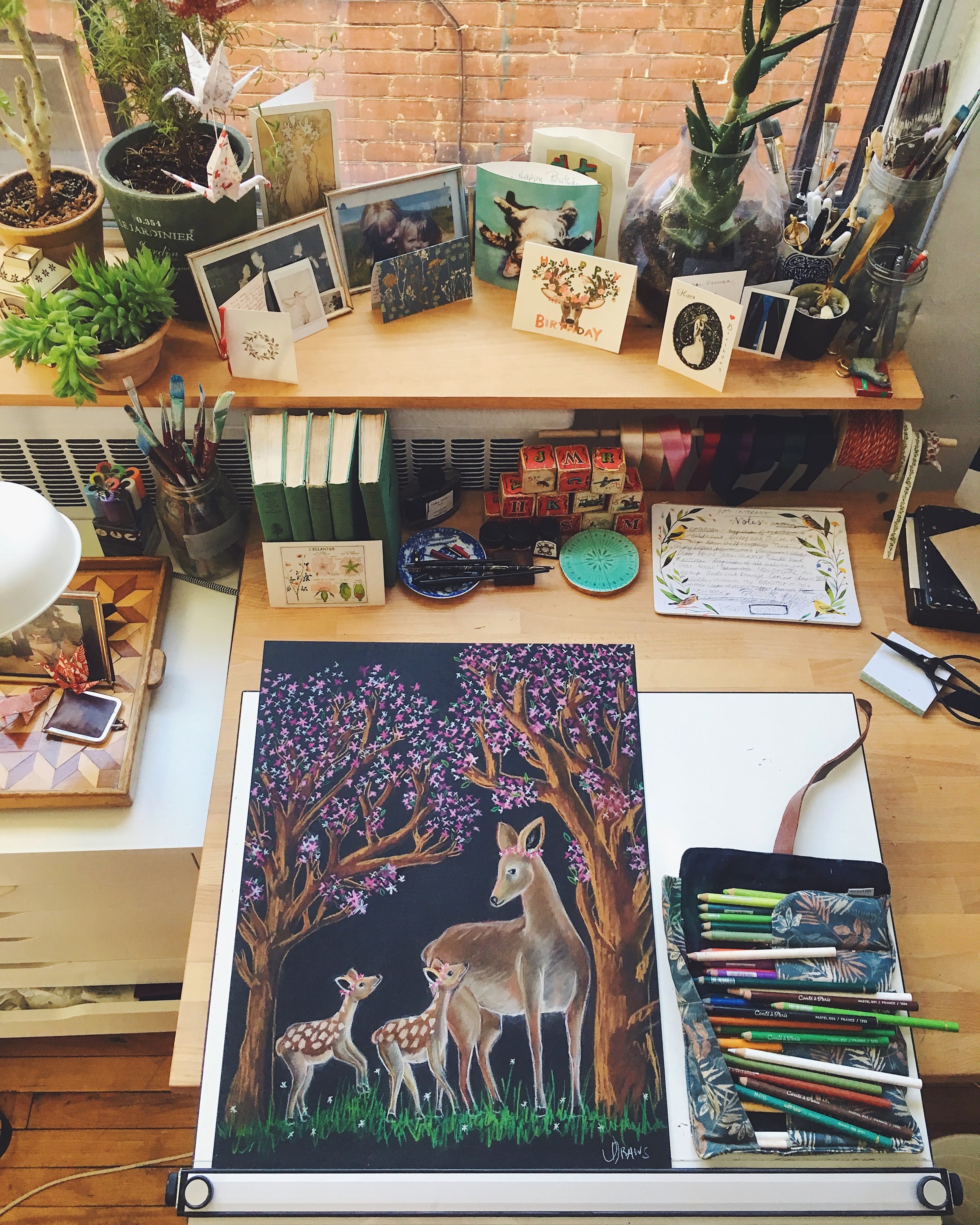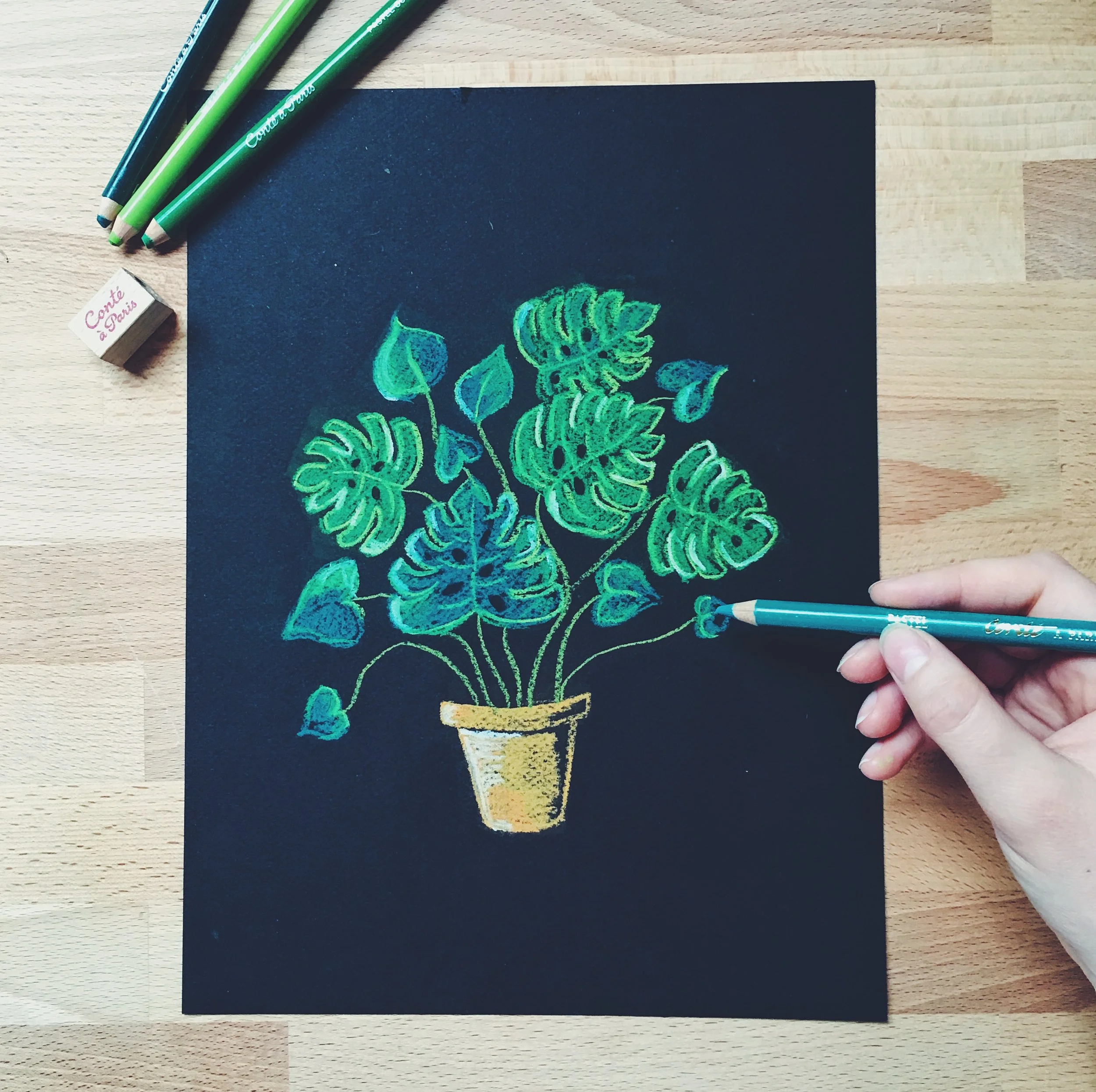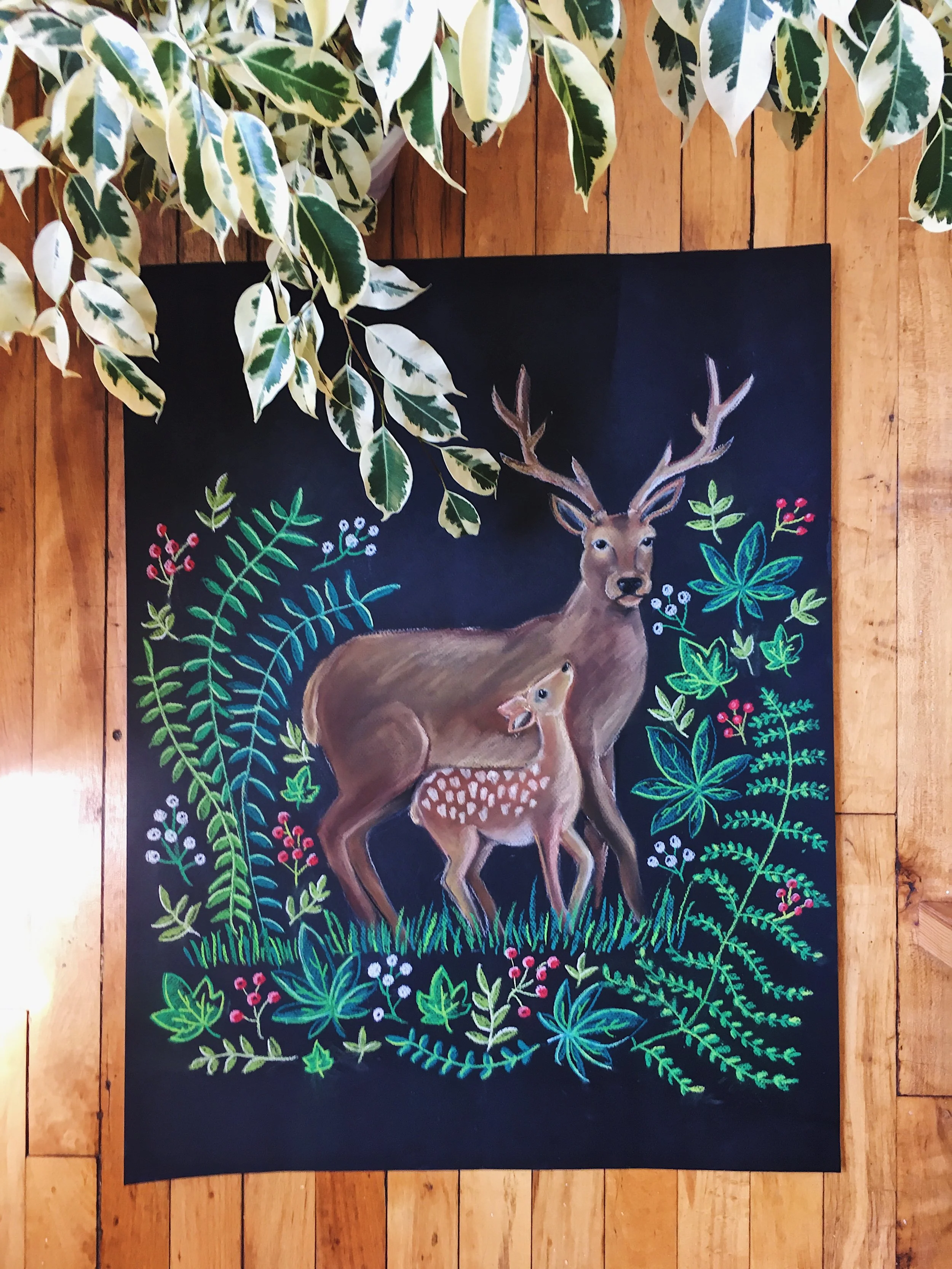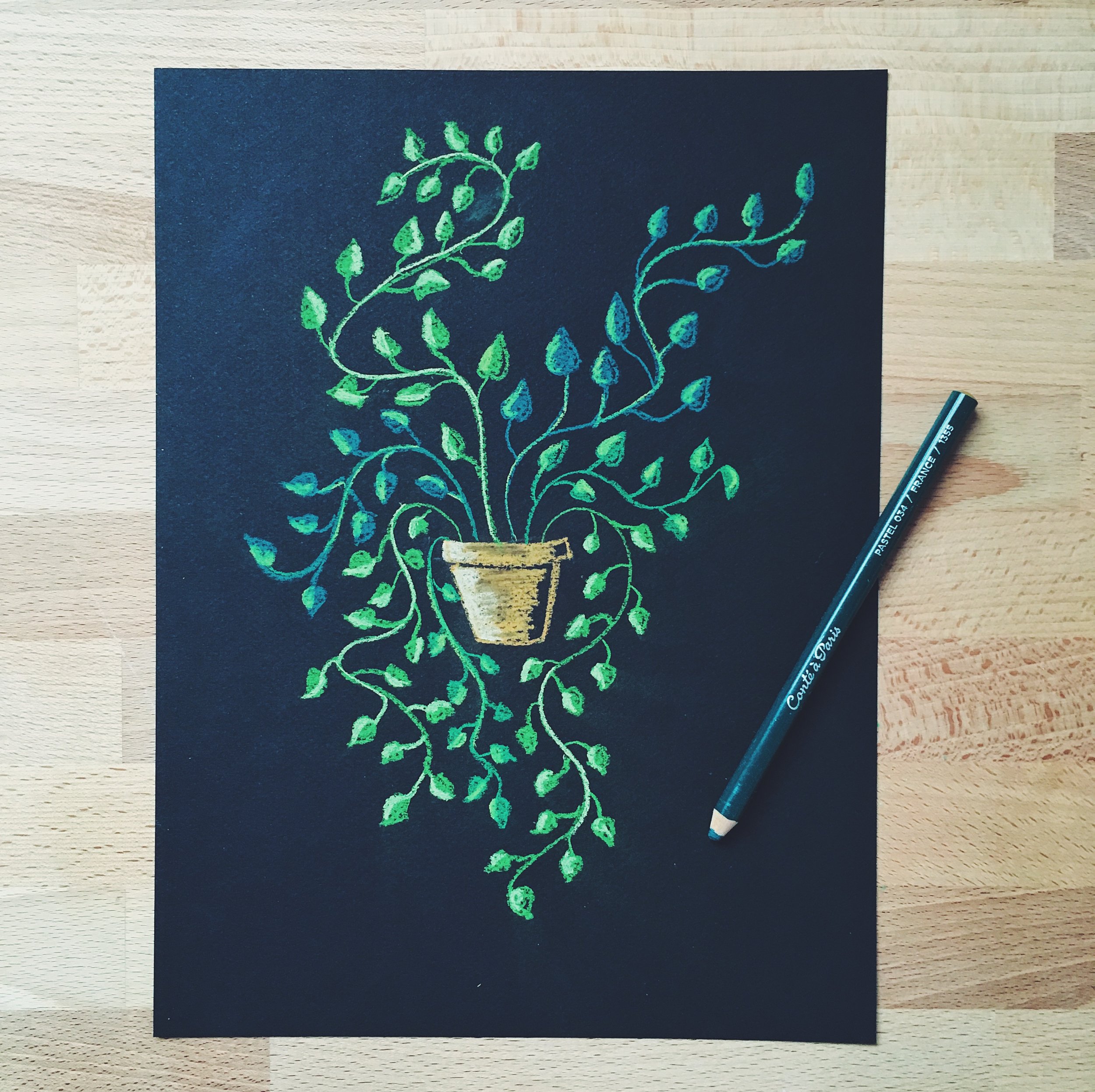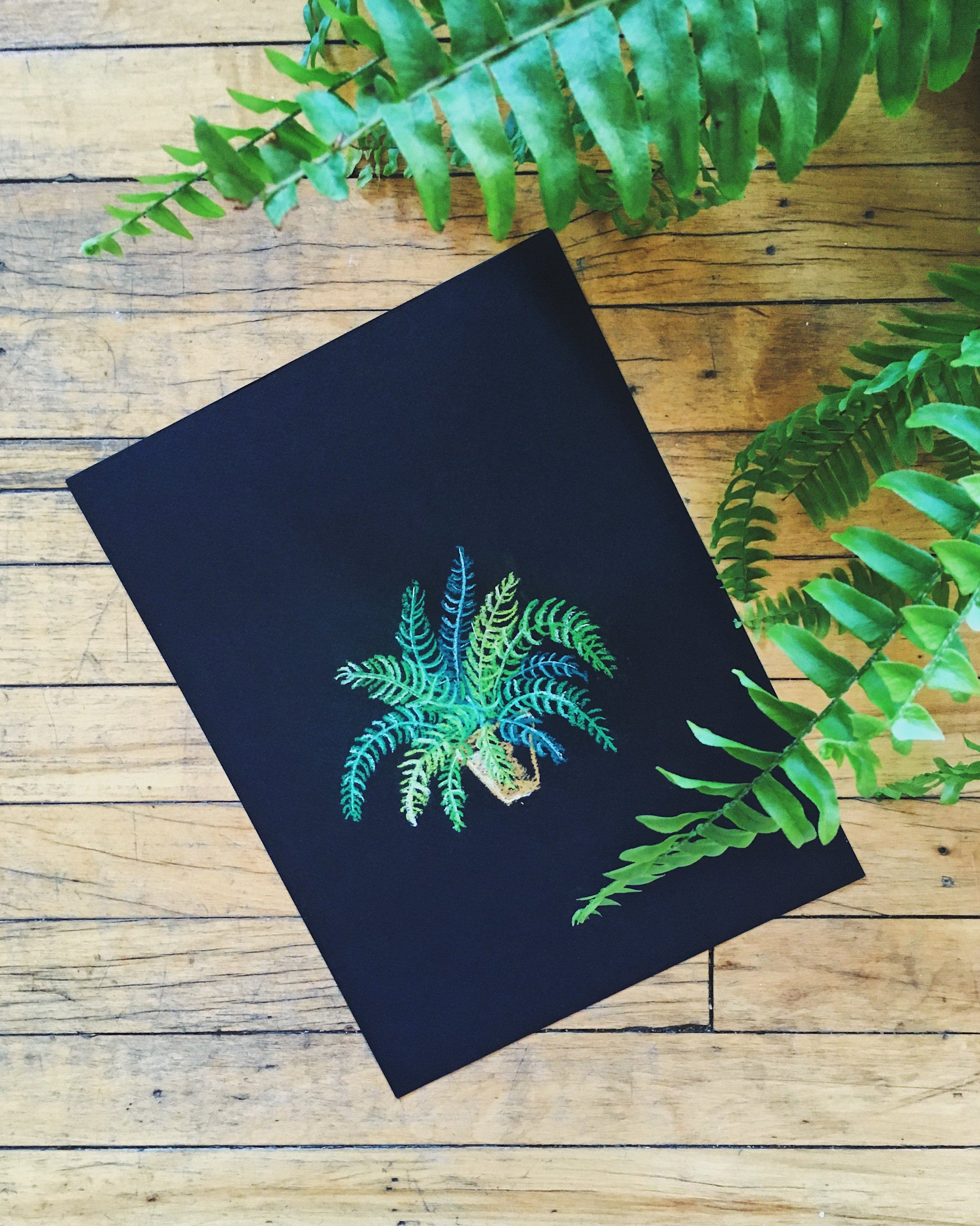 Chalk art is usually associated with large-scale installations on chalkboards, but it doesn't have to be! Chalk is a beautiful medium in all sizes; in addition to chalkboards, I also create smaller paper-based chalk illustrations.